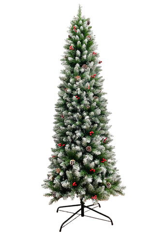Frosted Norwood Pencil Pine with Pine Cones & Red Berries and Metal Stand